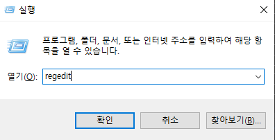 - 실행(Win+R)에서 regedit 입력