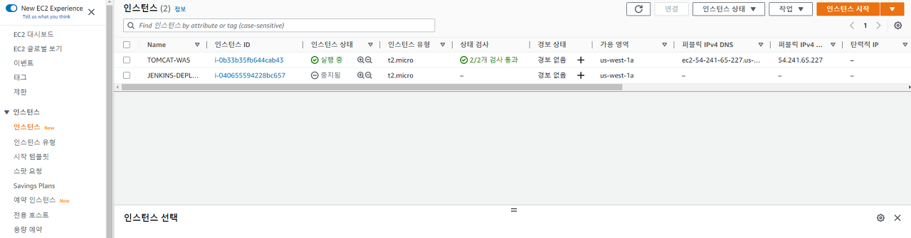 가입, 로그인 과정은 알아서 하면, 대시보드 화면으로 넘어온다. 왼쪽 리스트에서 인스턴스를 클릭하면 내가 생성한 EC2의 정보를 간단하게 볼 수 있다.