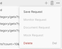 - History에서 요청에 호버하면 생기는 햄버거 버튼에 Save Request 클릭