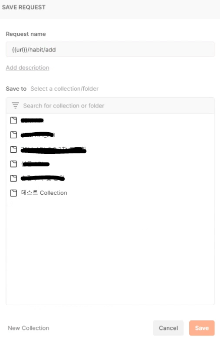 저장하려고 하는 Request들을 Collection으로 만들어야한다.