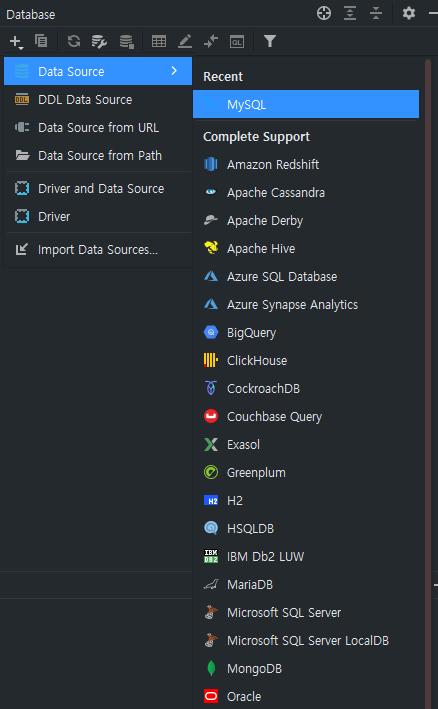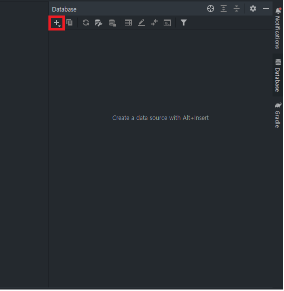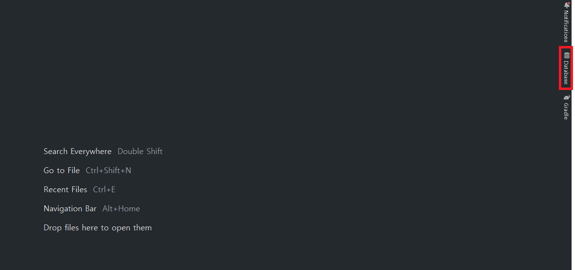 IntelliJ에서 이미 생성된 프로젝트나, 프로젝트를 만든 후 우측 창을 보면 Database 탭이 있다.