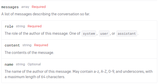 첫 번째는 GPT 프롬프트(Prompt)라고 알려진 메시지 프롬프트가 들어가는 message 배열 부분과
