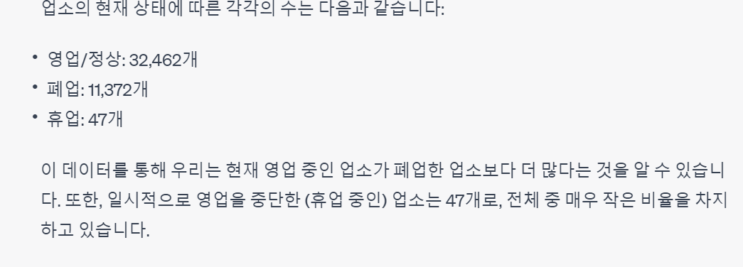 왜 실패했는지도 알려준다.(폐업일자도 사실은 있었는데, 데이터 변환 실패로 없다고 한 것 같다)