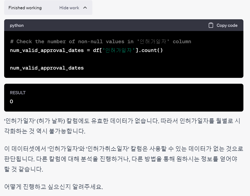 인허가 일자로 데이터를 바꿔서 다시 질문했다.