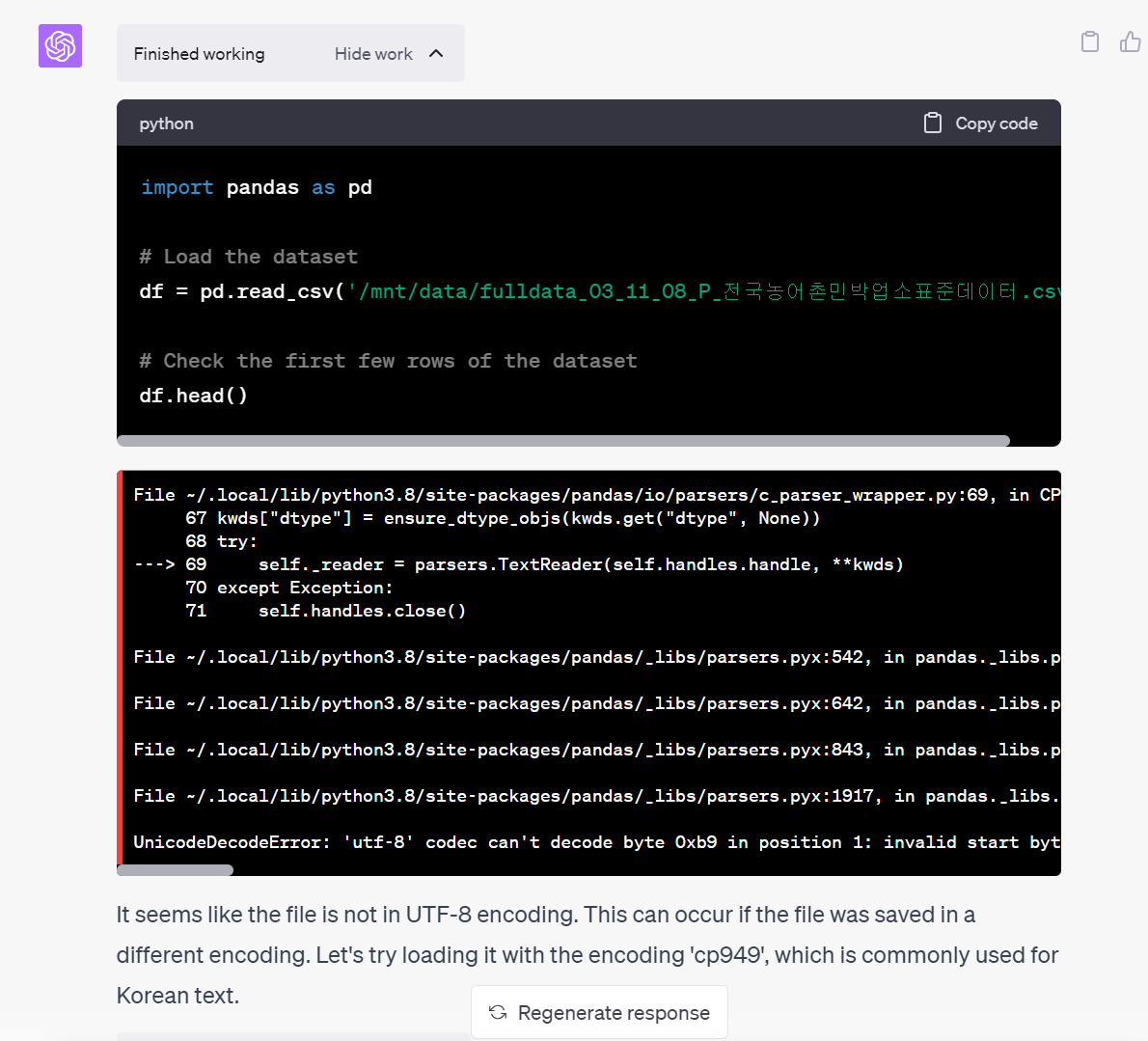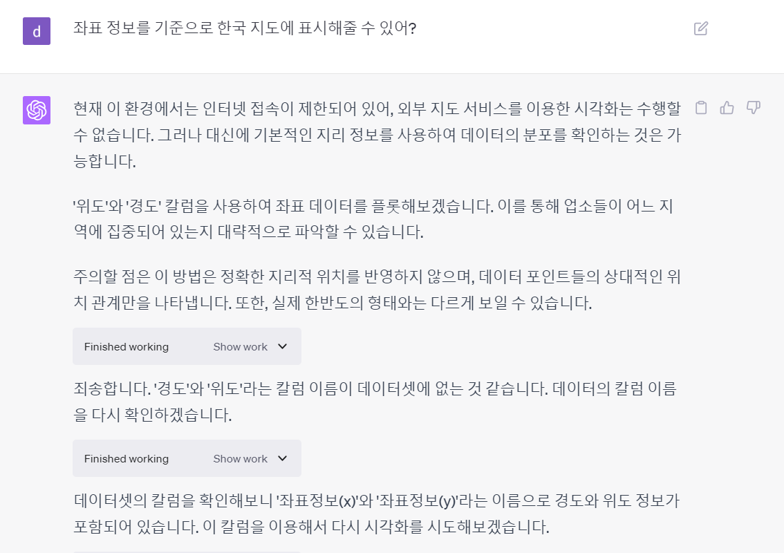 Show work를 눌러보면 gpt가 생성한 파이썬 코드도 확인할 수 있다.